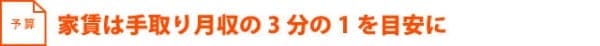 物件の立地や広さ、設備・仕様などは、すべて家賃に影響する。「少しくらいならなんとかなる」と、軽い気持ちで高い部屋に決めてしまうと、後で困ることになるので注意したい。そこで、家賃を設定する際には、手取り月収の3分の1を目安にしよう。例えば、月収が手取りで18万円なら、家賃にまわせるのは6万円。尚、アルバイト代やボーナスなどは計算に入れないこと。また、予算には管理費や車を持っているまたは、バイクを持っているなら駐車場代も含めて考えよう。