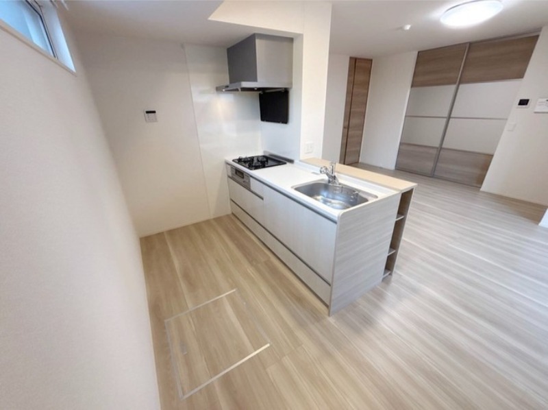 二人入居可、システムキッチン、給湯、追焚機能、床下収納、ウォークインクローゼット、CATV、BSアンテナ、宅配ボックス、駐輪場あり、角部屋、温水洗浄便座、カウンターキッチン、浴室乾燥機、洗面所独立、防犯カメラ、クローゼット、シューズボックス、保証人不要、水道(公営)、ガス(都市)、排水(下水)、バス専用、バス・トイレ別、シャワー、ガスコンロ、コンロ(三口)、エアコン、室内洗濯機置き場、オートロック、バルコニー、フローリング、TVドアホン、インターネット使用料無料、セキュリティ会社、敷金なし