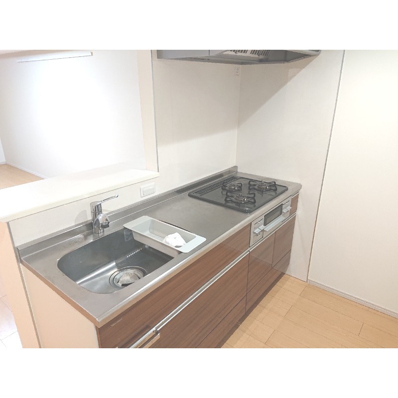 二人入居可、システムキッチン、給湯、追焚機能、ウォークインクローゼット、CATV、CSアンテナ、BSアンテナ、駐輪場あり、温水洗浄便座、カウンターキッチン、浴室乾燥機、洗面所独立、防犯カメラ、クローゼット、シューズボックス、水道(公営)、ガス(都市)、排水(下水)、バス専用、バス・トイレ別、シャワー、ガスコンロ、コンロ(三口)、エアコン、室内洗濯機置き場、バルコニー、フローリング、インターネット対応、TVドアホン、インターネット使用料無料、敷金なし