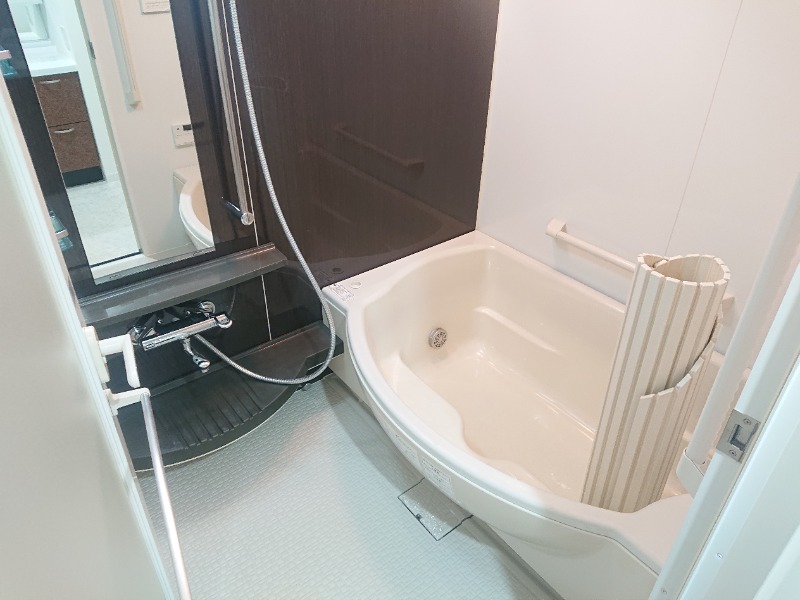 分譲賃貸、システムキッチン、給湯、追焚機能、シャワー付洗面化粧台、ウォークインクローゼット、宅配ボックス、駐輪場あり、バイク置き場あり、床暖房、温水洗浄便座、カウンターキッチン、浴室乾燥機、キッズルーム、洗面所独立、防犯カメラ、クローゼット、シューズボックス、水道(公営)、ガス(都市)、排水(下水)、バス専用、バス・トイレ別、シャワー、ガスコンロ、コンロ(三口)、室内洗濯機置き場、オートロック、エレベータ有、バルコニー、フローリング、TVドアホン