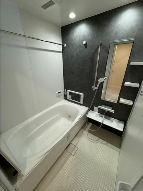 二人入居可、システムキッチン、給湯、追焚機能、CATV、駐輪場あり、角部屋、温水洗浄便座、浴室乾燥機、洗面所独立、浴室TV、防犯カメラ、クローゼット、シューズボックス、ペット対応、水道(公営)、ガス(都市)、排水(下水)、バス専用、バス・トイレ別、シャワー、ガスコンロ、コンロ(三口)、エアコン、室内洗濯機置き場、オートロック、バルコニー、フローリング、TVドアホン、インターネット使用料無料、セキュリティ会社
