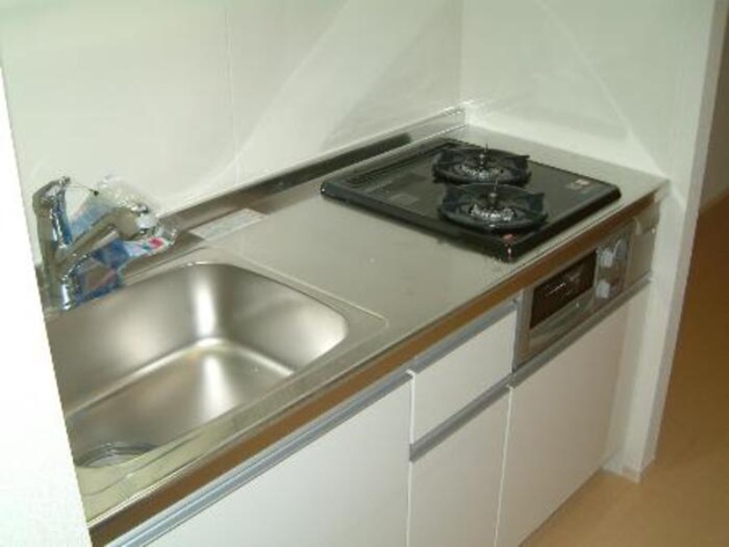 二人入居可、システムキッチン、給湯、シャワー付洗面化粧台、床下収納、ウォークインクローゼット、BSアンテナ、駐輪場あり、温水洗浄便座、浴室乾燥機、洗面所独立、防犯カメラ、シューズボックス、保証人不要、水道(公営)、ガス(都市)、排水(下水)、バス・トイレ別、シャワー、ガスコンロ、コンロ(二口)、エアコン、室内洗濯機置き場、オートロック、バルコニー、フローリング、TVドアホン、インターネット使用料無料、敷金なし