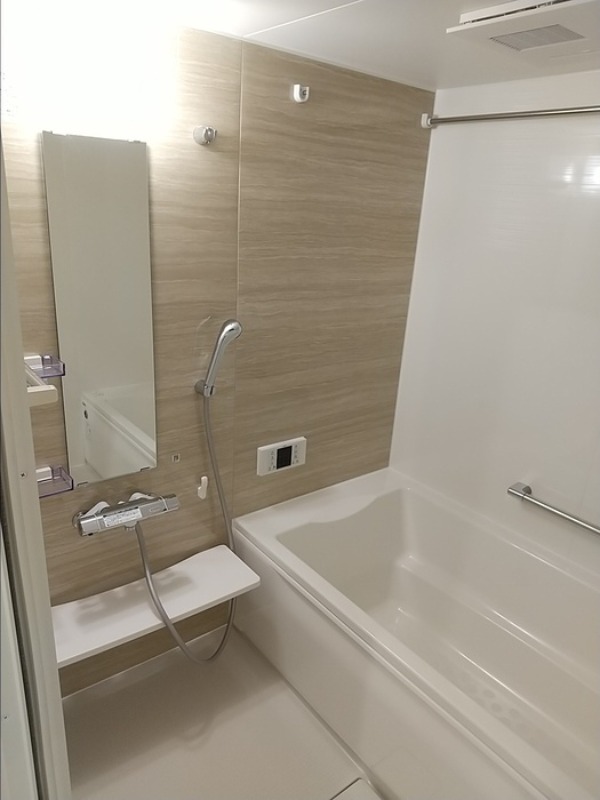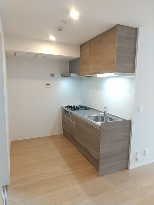 二人入居可、システムキッチン、給湯、追焚機能、シャワー付洗面化粧台、ウォークインクローゼット、BSアンテナ、駐輪場あり、温水洗浄便座、浴室乾燥機、洗面所独立、防犯カメラ、クローゼット、シューズボックス、保証人不要、水道(公営)、ガス(都市)、排水(下水)、バス・トイレ別、シャワー、ガスコンロ、コンロ(三口)、エアコン、室内洗濯機置き場、オートロック、バルコニー、フローリング、TVドアホン、インターネット使用料無料、セキュリティ会社、最上階