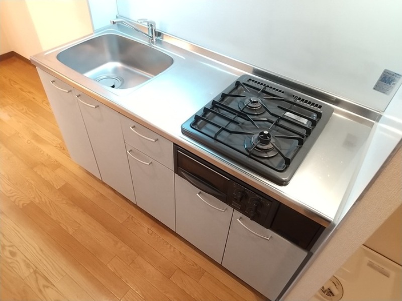 システムキッチン、給湯、シャワー付洗面化粧台、CATV、宅配ボックス、駐輪場あり、温水洗浄便座、洗面所独立、防犯カメラ、クローゼット、シューズボックス、保証人不要、水道(公営)、ガス(都市)、排水(下水)、バス・トイレ別、シャワー、ガスコンロ、コンロ(二口)、エアコン、室内洗濯機置き場、バルコニー、フローリング、TVドアホン、礼金無し、敷金なし
