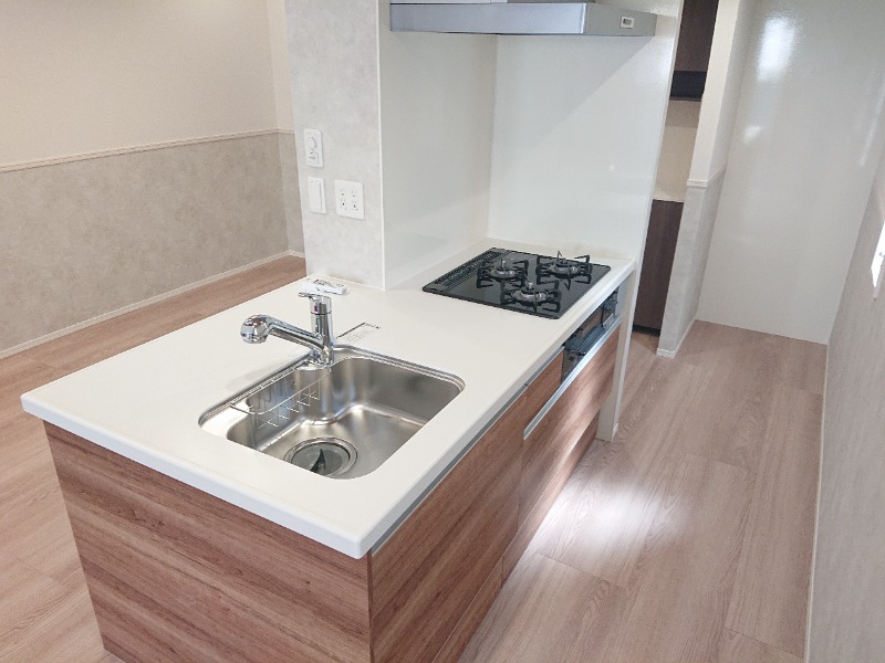 二人入居可、システムキッチン、給湯、追焚機能、ウォークインクローゼット、宅配ボックス、駐輪場あり、角部屋、温水洗浄便座、カウンターキッチン、浴室乾燥機、洗面所独立、浴室TV、防犯カメラ、ペット対応、保証人不要、水道(公営)、ガス(都市)、排水(下水)、バス専用、バス・トイレ別、シャワー、ガスコンロ、コンロ(三口)、エアコン、室内洗濯機置き場、オートロック、バルコニー、フローリング、インターネット対応、TVドアホン、インターネット使用料無料、セキュリティ会社、最上階、敷金なし
