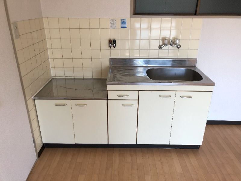 システムキッチン、水道(公営)、ガス(都市)、排水(下水)、バス専用、バス・トイレ別、シャワー、ガスコンロ、コンロ(一口)、エアコン、洗濯機置き場、バルコニー、フローリング、インターネット対応、敷金なし