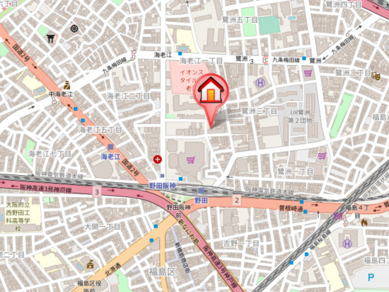 | 近隣情報 | ショッピングセンター:イオン野田阪神店77m コンビニ:セブンイレブン大阪鷺洲3丁目店111m スーパー:関西スーパー福島店466m 中学校:大阪市立下福島中学校1297m ドラッグストア:キリン堂 肥後橋店2527m 小学校:大阪市立明治小学校2633m |