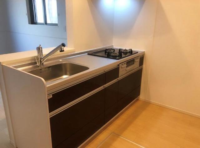 二人入居可、システムキッチン、給湯、追焚機能、シャワー付洗面化粧台、床下収納、CSアンテナ、BSアンテナ、駐輪場あり、角部屋、温水洗浄便座、カウンターキッチン、浴室乾燥機、洗面所独立、防犯カメラ、クローゼット、シューズボックス、ペット相談、保証人不要、水道(公営)、ガス(都市)、排水(下水)、バス・トイレ別、シャワー、ガスコンロ、コンロ(三口)、エアコン、室内洗濯機置き場、オートロック、バルコニー、フローリング、TVドアホン、インターネット使用料無料、セキュリティ会社、敷金なし