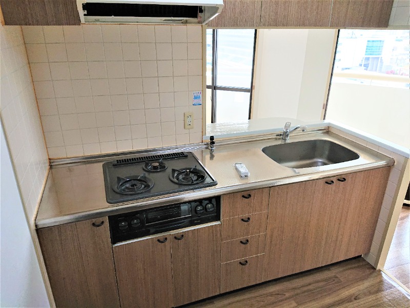 二人入居可、システムキッチン、給湯、シャワー付洗面化粧台、CATV、宅配ボックス、駐輪場あり、バイク置き場あり、角部屋、温水洗浄便座、洗面所独立、防犯カメラ、クローゼット、シューズボックス、ペット対応、水道(公営)、ガス(都市)、排水(下水)、バス・トイレ別、シャワー、ガスコンロ、コンロ(三口)、室内洗濯機置き場、オートロック、エレベータ有、バルコニー、フローリング、インターネット対応(光ファイバー)、ごみ出し24時間OK、インターネット使用料無料、敷金なし