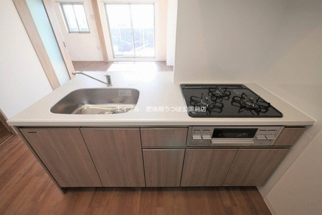 分譲賃貸、システムキッチン、給湯、シャワー付洗面化粧台、ウォークインクローゼット、CSアンテナ、BSアンテナ、駐輪場あり、バイク置き場あり、角部屋、温水洗浄便座、カウンターキッチン、浴室乾燥機、洗面所独立、防犯カメラ、シューズボックス、照明器具付き、水道(公営)、ガス(都市)、排水(下水)、バス・トイレ別、シャワー、ガスコンロ、コンロ(三口)、エアコン、室内洗濯機置き場、オートロック、エレベータ有、バルコニー、フローリング、TVドアホン、インターネット使用料無料、敷金なし