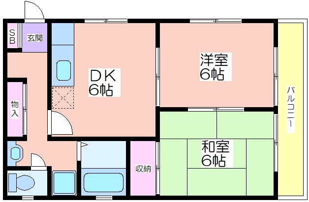 南向き角部屋2DK。敷金礼金なし駅徒歩5分で快適生活。